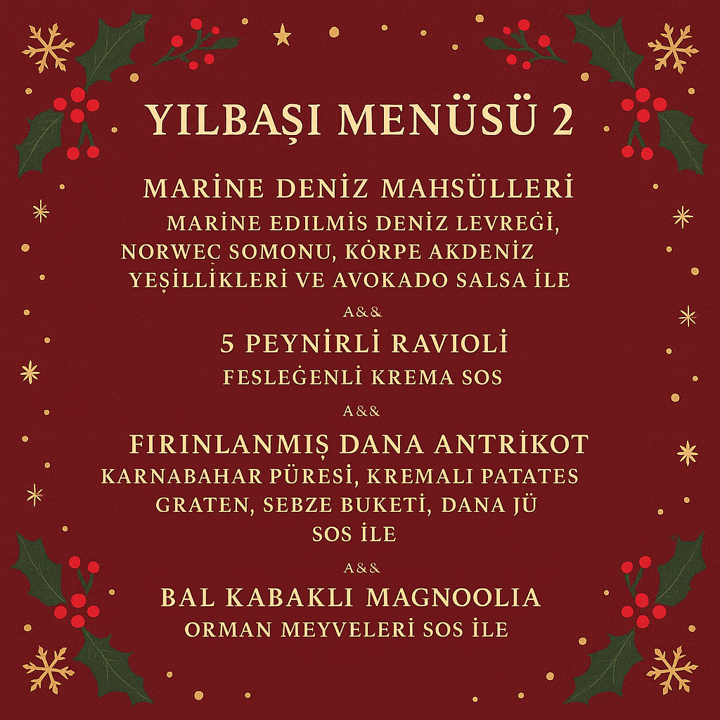 Yılbaşı menülerimizi inceleyebilirsiniz.